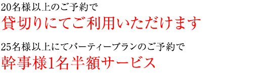 ※こちらの特典は、レストランでのご宴会予約の場合に限ります。 ※他の割引・サービスとの併用はできません。